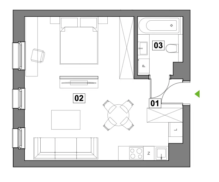 2. Salon z aneksem 31.29 m²