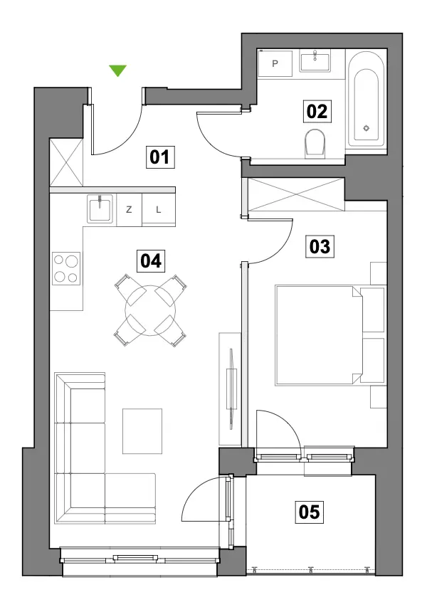 - Salon z aneksem 21.06 m²