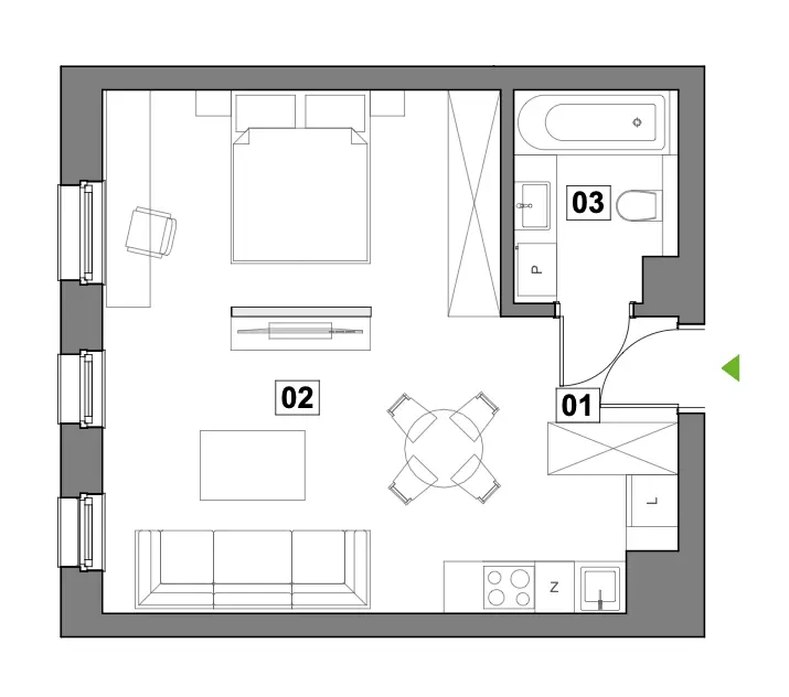 2. Salon z aneksem 31.29 m²